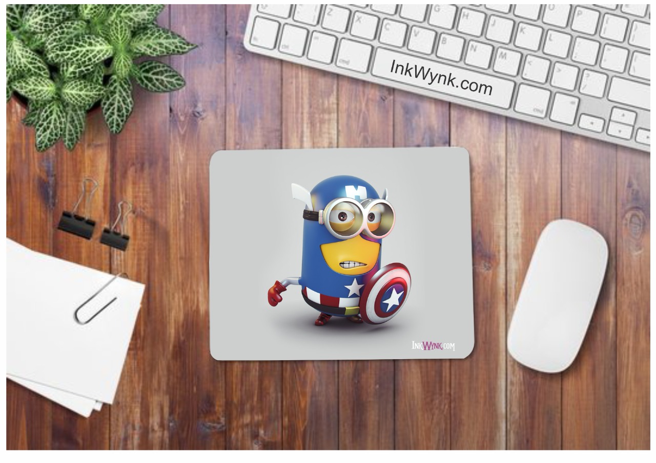This Caption America Minion Printed Mouse pad is beautifully designed and printed. Use this Minion printed Mousepad in your office and home. You can also print your company name, company logo, brand name, or your own name on this mouse pad. The mouse pad is made up of premium quality 3mm rubber with a non-slip base/ anti grip base and an extra smooth upper surface for more precision. High-quality print on Mouse Pad. We offer you a lifetime print warranty on our mouse pads and other printed items.