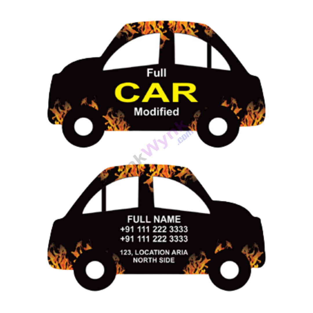 Car Shape 500 GSM Matt UV Visiting Card | Make a bold first impression with our Car Shape 500 GSM Matt UV Visiting Cards. Crafted with premium 500 GSM cardstock and finished with a sleek Matt UV coating, these customized die-cut visiting cards are perfect for automobile businesses, car dealers, and auto enthusiasts.