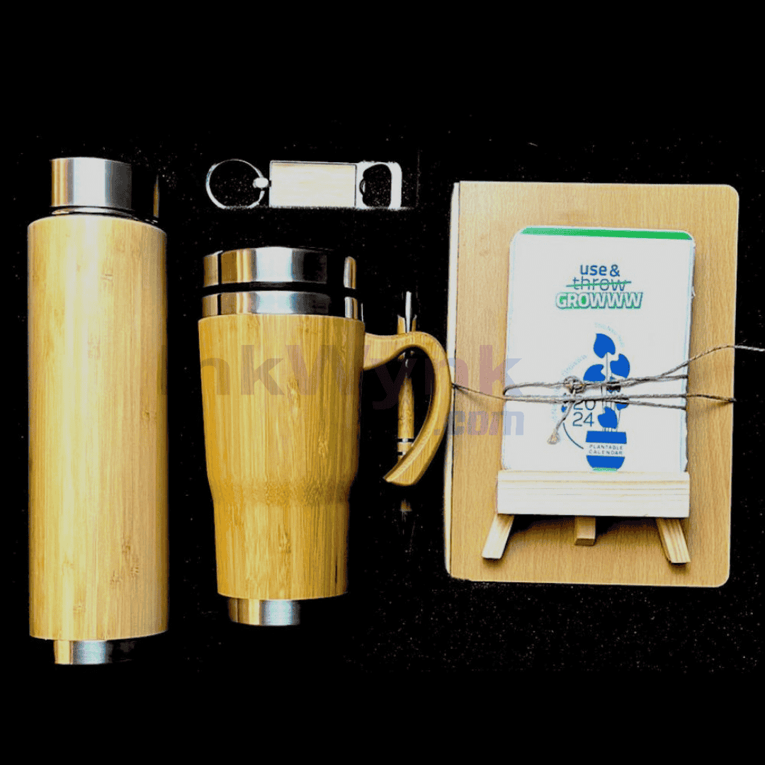 - MDF Diary, Bamboo Bottle & Tumbler, Plantable Calendar, Pen & Keychain