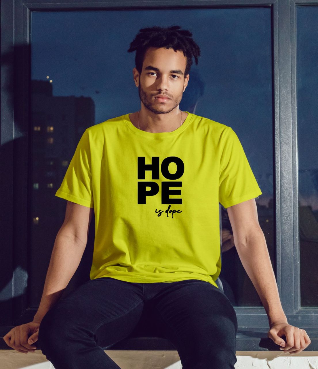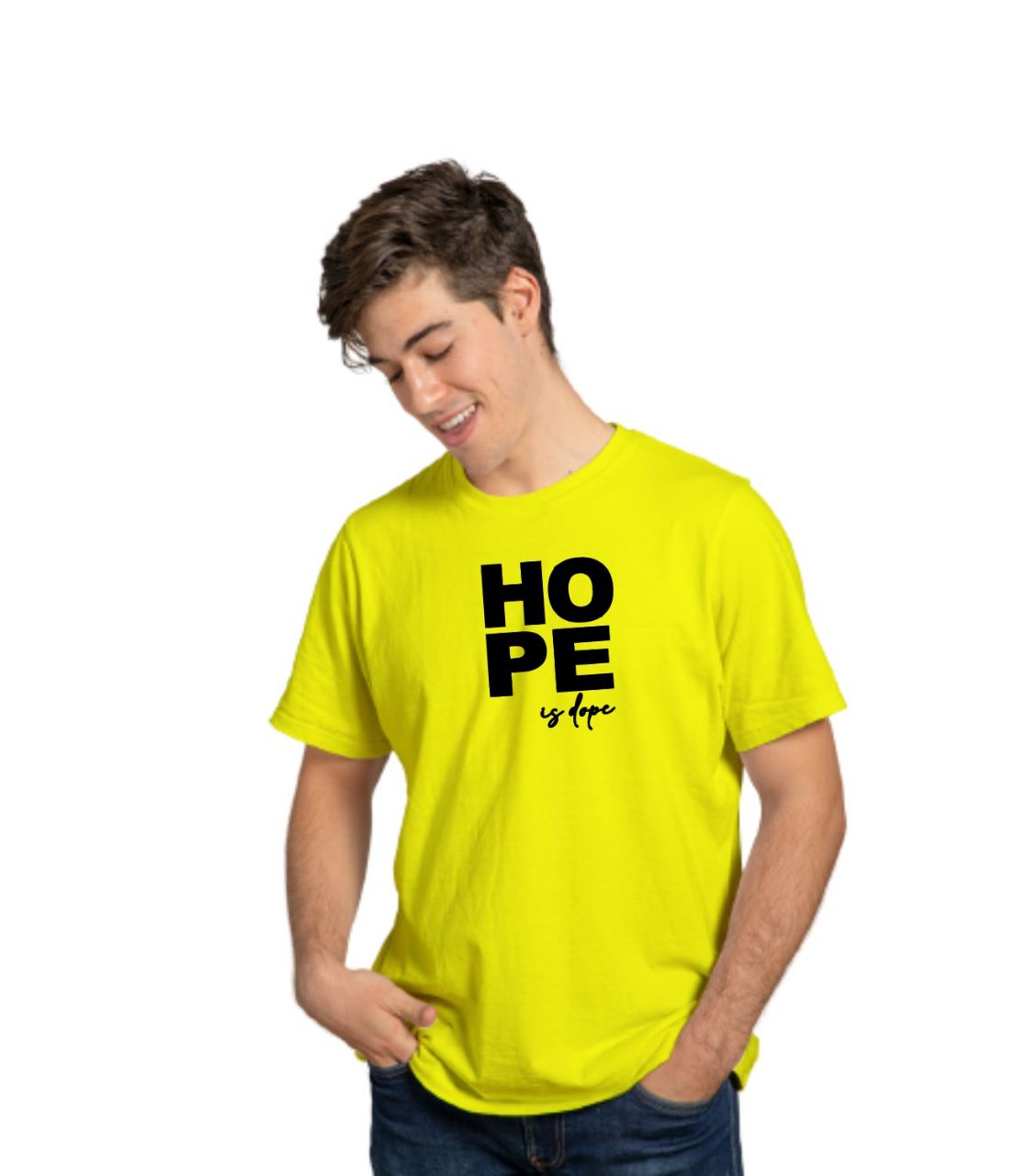 - Hope is Dope Half Sleeve Cotton Yellow T-Shirt for Men