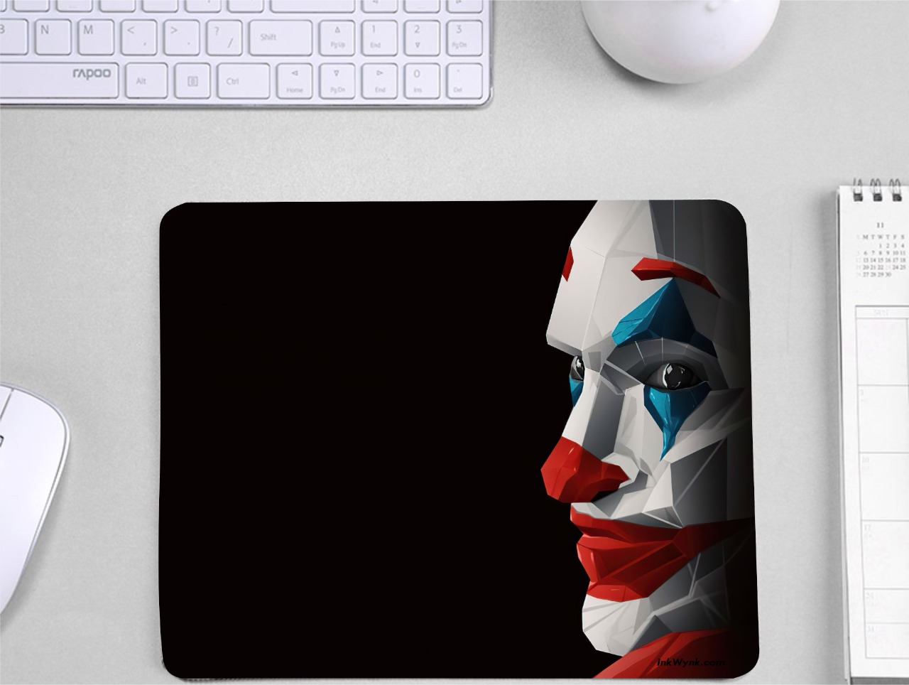This Joker Face Mask Lightweight Mouse Pad is beautifully designed and printed in India. Use this Joker Face Mask Mousepad in your office or home. You can also print your company name, company logo, brand name, or your own name on this mouse pad. The mouse pad is made up of premium quality 3mm rubber with a non-slip base/ anti grip base and an extra smooth upper surface for more precision. High-quality print on Mouse Pad. We offer you a lifetime print warranty on our mouse pads and other printed items. Arthur Fleck, a party clown, leads an impoverished life with his ailing mother. However, when society shuns him and brands him as a freak, he decides to embrace the life of crime and chaos.