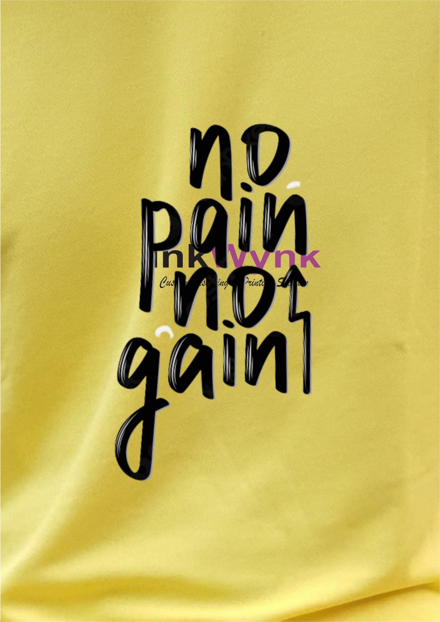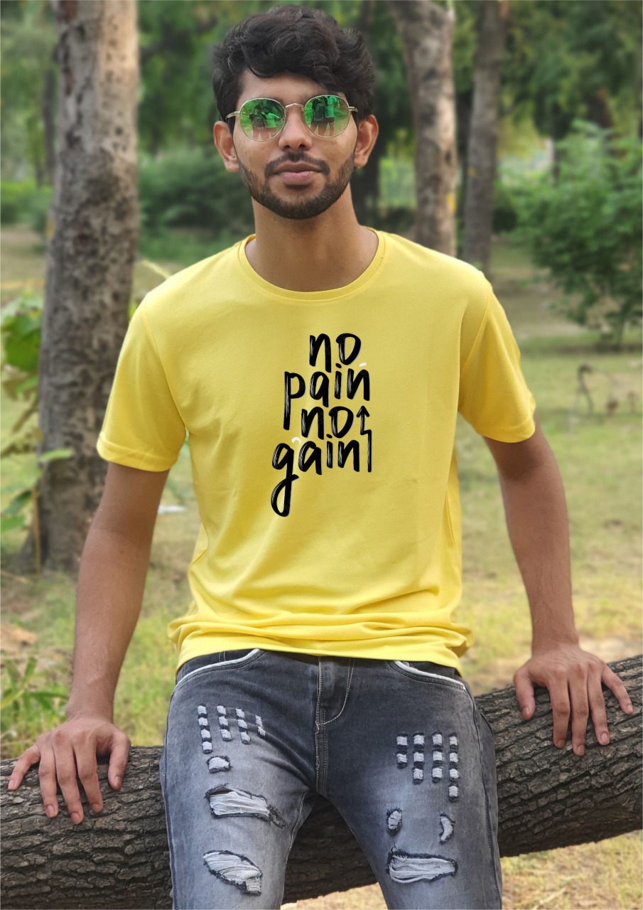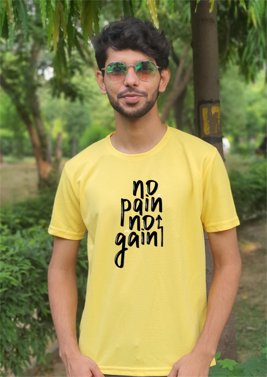 No Pain No Gain Gym Printed T-Shirt for Men (Yellow)