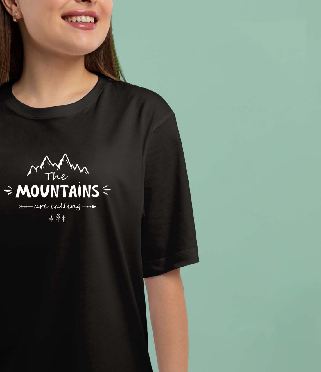- This T-Shirt is specially designed for all Women with confidence out there. Every girl is a princess in her own way and she can rule in her kingdom. This Cotton The Mountains Are Calling Printed T-Shirt is for College Women. You can wear this half sleeve T-Shirt for your college, trip, Marketing, or casually. This t-shirt is made up of premium quality cotton which is very comfortable for daily usage.